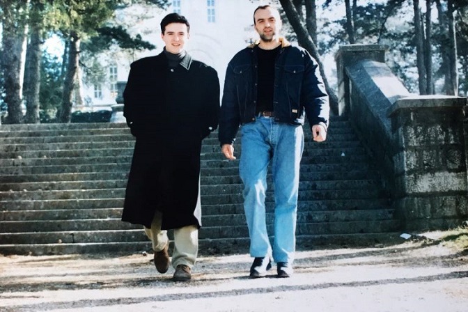 Испред никшићке Саборне цркве са пријатељем