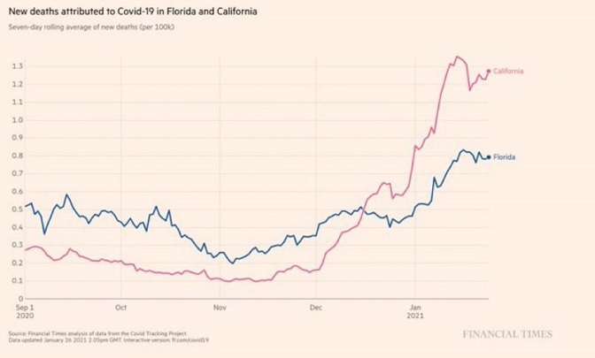 На овом испод су упоређене Калифорнија (има закључавање) и Флорида (нема)
