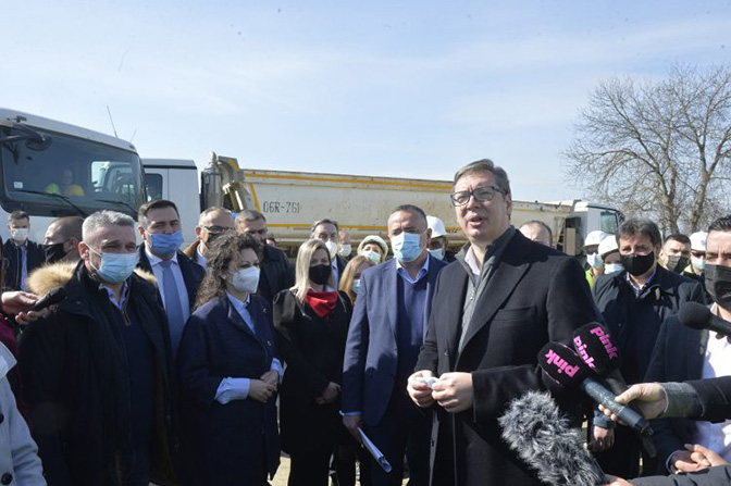 „Вакцинисаћу се у понедељак или уторак у једном од мањих места где ћу замолити све домаћине и сељане да ми се придруже. Видећете, десет дана пошто се вакцинишем имаћемо још 500.000 вакцинисаних“, казао је Вучић одговарајући на питања новинара после обиласка градилишта моста преко Јужне Мораве код Сталаћа у оквиру Моравског коридора.