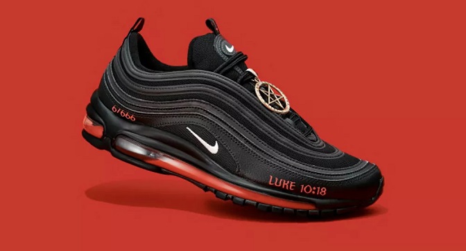 „Најки“ је у четвртак објавио да је постигао договор са компанијом „МСЦХФ продукт студио“, која је сарађивала са репером Лил Нас Иксом на креирању лимитиране серије „Сатаниних патика“ – модификација „најки ер макса“ из 1997. године, али са темом ђавола, где је ваздушни ђон напуњен црвеним мастилом са једном капи људске крви. „Украшене“ су пентаграмима и исписане библијским мотивом „Лука 10:18“, референцом на библијски стих који алудира на Сатанин пад с неба. По цени од 1.018 долара направљено је само 666 пари патика.