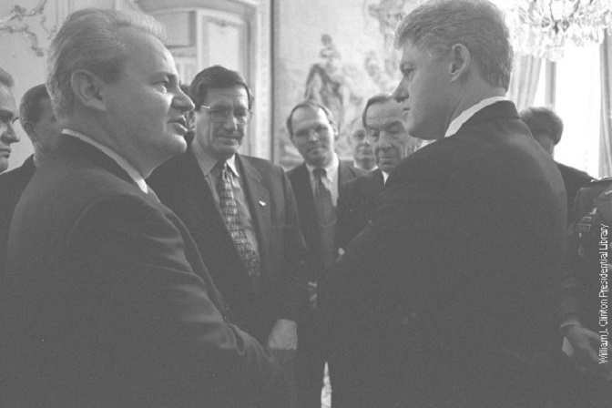 Слободан Милошевић, Ричард Холбрук, Ворен Кристофер и Бил Клинтон, Париз, 14. децембар 1996.