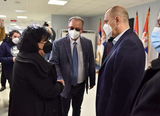 Директор Клиничког центра Ниш Зоран Перишић са министром здравља Златибором Лончаром на откривању спомен-плоче у част покојног др Миодрага Лазића Лазе (Фото: Спутњик/Димитрије Николић)