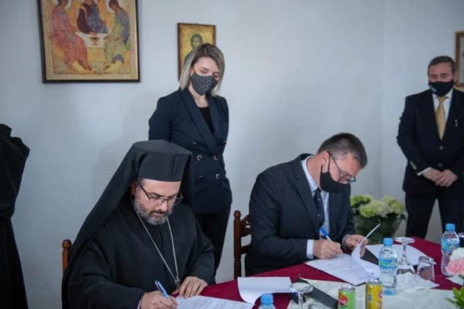 Послије молитве која је служена у саборном манастирском храму обављено је потписивање протокола између Министарства културе и Митрополије Елбасана о повратку ове светиње Цркви од стране Државе