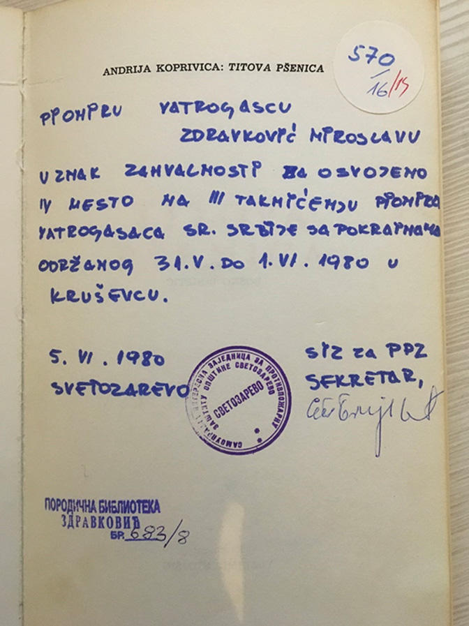 Отворио сам породичну библиотеку и међу малим књижицама (лака и мала је идеална комбинација) прочитао сам наслов „Титова пшеница“. А онда сам угледао приложену фотографију: