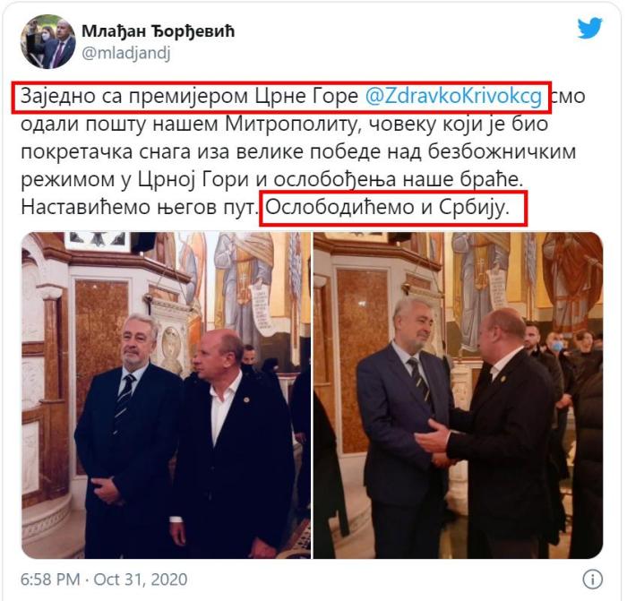„Колико ће масони и чланови трилатерале помоћи Кривокапићу и да ли је и он припадник неке од ложа, брзо ћемо се уверити. Кога су ови саветовали, политички су брзо пропали. Какав је однос наше Цркве према оваквој пенетрацији масона и припадника разних ложа у Кривокапићевој влади већ је видљива а тврдили су да ће бити православна и хришћанска”, каже Медојевић.