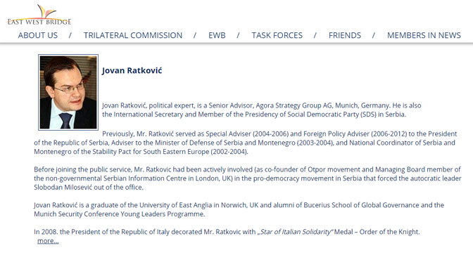 Биографија Јована Ратковића на сајту организације East-West Bridge