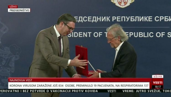 Александар Вучић уручио Петеру Хандкеу орден Карађорђеве звезде првог степена и изразио му захвалност Србије због свега што је учинио за нашу земљу