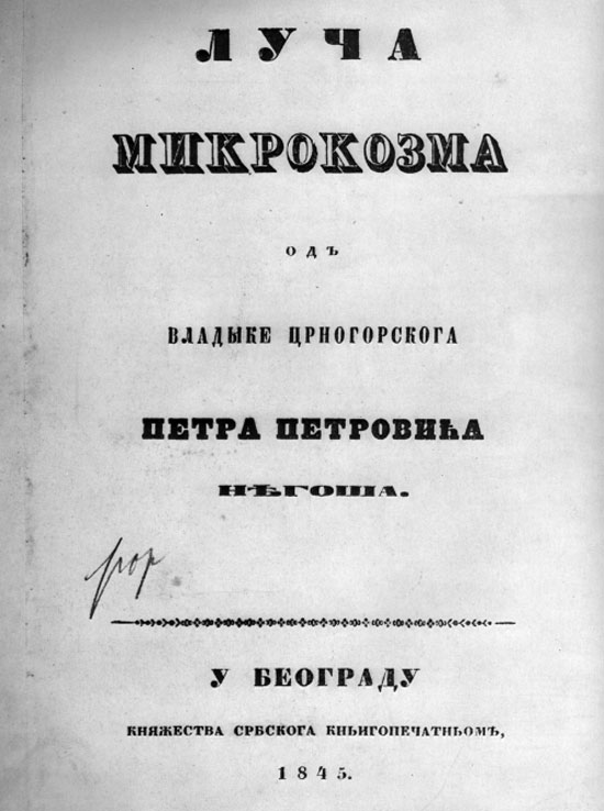 Насловна страна Његошева дела „Луча Mикрокозма“