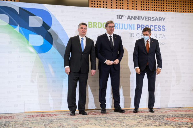 На самиту на Брду код Крања, поред Вучића и домаћина скупа, шефа словеначке државе Борута Пахора, учествују и председници Хрватске, Црне Горе, Северне Македоније, Албаније и Косова Зоран Милановић, Мило Ђукановић, Стево Пендаровски, Иљир Мета и Вјоса Османи и чланови Председништва БиХ Милорад Додик, Шефик Џаферовић и Жељко Комшић.