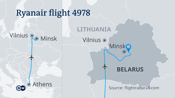 Белоруске службе тај чин правдају тврдњом да се у авиону налазила бомба која је требало да експлодира у њеном ваздушном простору. Бомба након слетања није пронађена, али су ухапшени белоруски новинар и његова пријатељица. „Тиме је дошао крај доба реторике“, сматра председник Литваније Гитанас Науседа.
