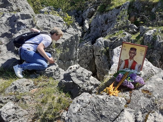 Камен на који је падала њихова мученичка крв данас је био топао. Са камена у јаму капље восак, на кости мученика. На стази испод јаме трагови звери. Нема те кише која их може опрати.