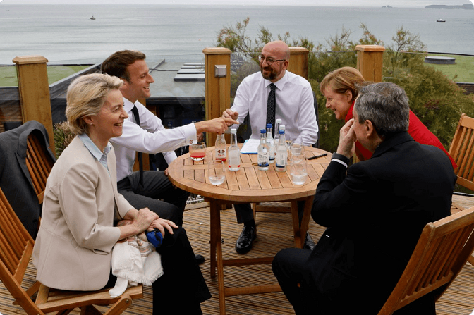 Док у Њемачкој дјеца у школским клупама морају сједити с маскама чак и на љето, а у појединим градовима, попут Берлина, и даље постоје четврти у којима је ношење маске обавезно и поред високих температура, изгледа да правила која политичари намећу становништву за њих не важе, судећи бар по сликама са састанка Г7 у Корнволу.