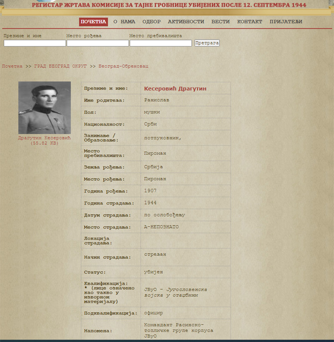 Виши суд у Београду рехабилитовао је потпуковника ЈВуО Драгутина Кесеровића, команданта оперативне групе расинско-топличког одреда ЈВуО који је на монтираном комунистичком процесу стрељан 17.08.1945. године.