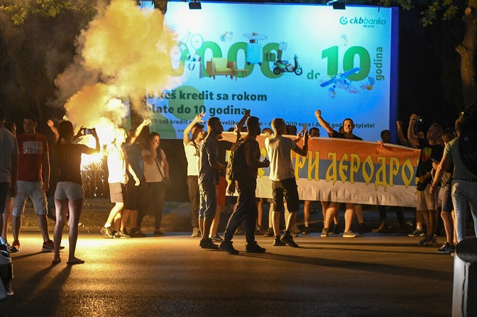 Група грађана протестовала је у Подгорици због одређивања притвора Подгоричанину Ристу Јовановићу, кога је косовска полиција ухапсила на Видовдан, 28. јуна, на Газиместану.