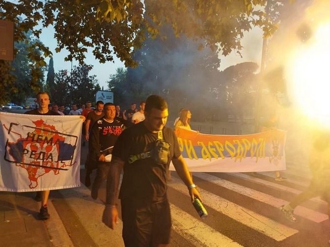 Окупљени су скандирали „Ој Косово, Косово“, „Слобода за Риста“ и „Црна Гора и Србија, то је једна фамилија“