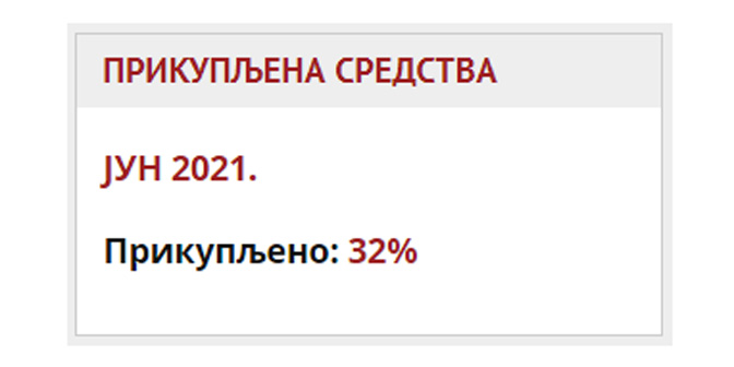 Хвала свима који су несебично приложили текст, новац или нас поменули у молитвама – у јуну 2021. године успели смо да скупимо 32 одсто потребних средстава (прилично мање него у мају када је било 45 одсто).
