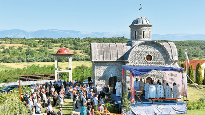 „Тих дана нисмо били нигде, свако је оставио неког свог у централној Србији. Услови страшни”, сведочи Малиша Ђурић, председник привременог органа општине Исток. Било је само питање тренутка када ће ова група невољника напустити овај крај, а онда се између развалина појавио митрополит црногорско-приморски Амфилохије. Одслужио је литургију и поручио: „Ви сте потребни овим светињама, ви сте потребни овој земљи. Ето, мало сте отишли са ове земље – неколико година – погледајте каква је пустолина постала! Ова земља вапије за вама, за вашим рукама!”