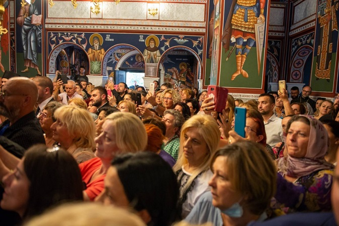 Извињавам се, још једна ствар. Гледам фотографију из цркве у Добоју и боде ми очи. Наиме, негде око половине људи држи мобилни и слика Патријарха. За мене је то нешто нечувено и поред тога што је ово „ модерно време „. Ићи у Божји дом на Литургију где ништа не сме да ти скреће мисли са Службе која је посвећена Богу, а ти сликаш и све време размишљаш „ кад дођем кући па окачим слике на фејсбук и инстаграм има сви да ми завиде“. Без зле намере – то су припадници „великог стада“. За мене је то страшно, шта ти људи траже у Божјем дому ???