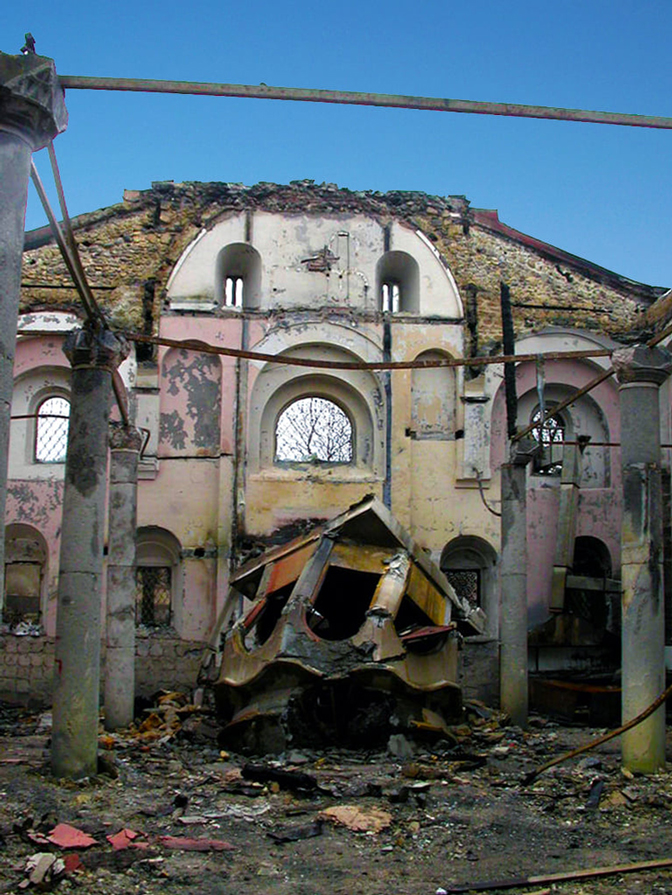 Саборна црква Св. Ђорђа у Призрену, срушена у Мартовском погрому 2004. (Фото: Кријејтив комонс лиценца)