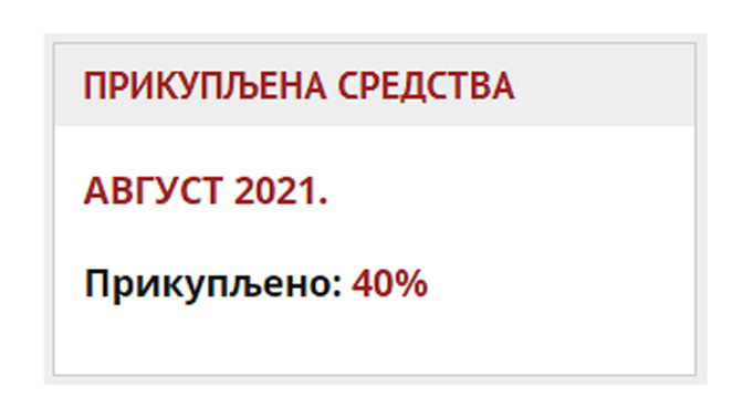 Хвала свима који су несебично приложили текст, новац или нас поменули у молитвама – у августу 2021. године успели смо да скупимо 40 одсто потребних средстава.