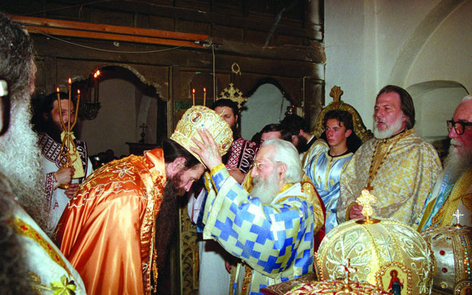 Патријарх Павле хиротонише у епископски чин Јоаникија (Мићовића), Цетињски манастир, 3. јуна 1999. (Фото: Митрополија црногорско-приморска)
