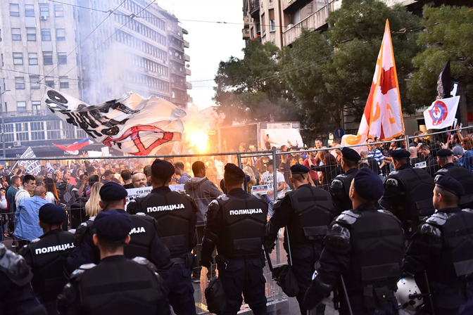„Група од неколико десетина демонстраната гађала је јајима полицијски