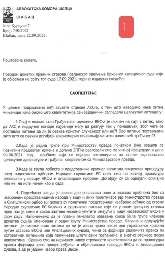 Осетљивост тренутне ситуације (нпр. недоумица није ли притисак адвокатуре и српског народа на ВКС опет врста непожељног притиска), изврсно је сажета у обавештењу Адвокатске коморе Шапца.