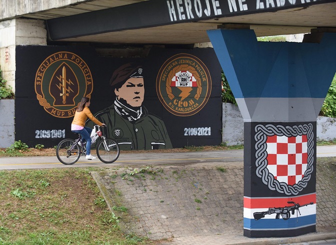 Мурал са ликом Михајла Храстова који је 21. 9. 1991. погубио тринаест и тешко ранио двојицу заробљених припадника ЈНА (Фото: Роберт Фајт/Кропикс)
