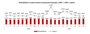 Србија: Број умрлих у августу 2021. мањи за 3,2% него у истом месецу 2020.