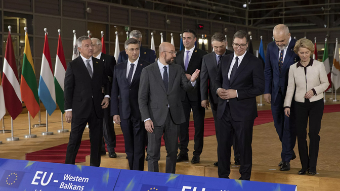 Застој око декларације самита ЕУ и лидера Балкана, 6. октобра, представља најслабију тачку стратегије ЕУ да уведе Србију, тзв. Косово, Босну и Херцеговину, Црну Гору, Албанију и Северну Македонију у блок, што се, како се напомиње, подударило са распламсавањем тензија на административној линији Србије и тзв. Косова.