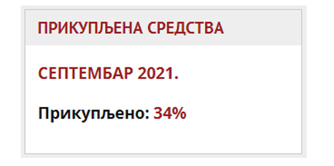 Хвала свима који су несебично приложили текст, новац или нас поменули у молитвама – у септембру 2021. године успели смо да скупимо 34 одсто потребних средстава.