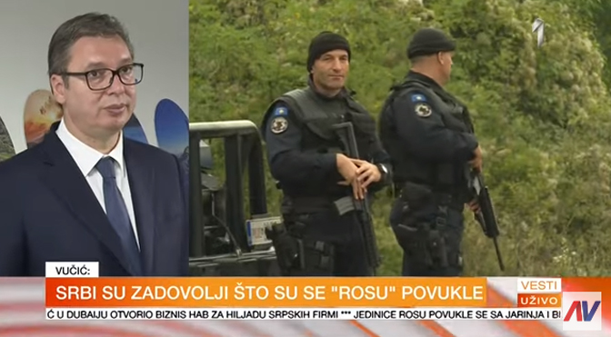 „Ја мислим да су Срби задовољни што се Роса повукла. То је било и данас напето, малтретирање наших људи, па склоните један камион, па све до краја па да крену у последњем часу да би напустили на време. Свеједно. Напустили су, и видели сте одушевљење нашег народа и на Брњаку и у Зубином Потоку и на Јарињу и у општини Лепосавић, када су њихове снаге већ напуштале Север Косова. Није требало ту ни да долазе. Важно је да су људи срећни и задовољни“, оценио је из Дубаија Председник Србије.