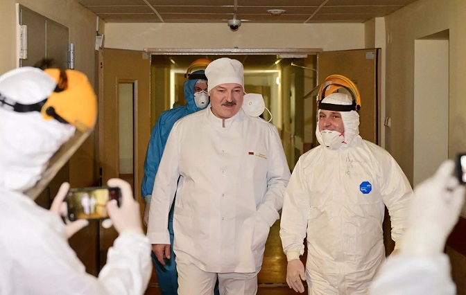 Како је изјавила његова портпаролка Наталија Ејсмонд, Лукашенков тим и људи из окружења наговарају га да носи заштитна средства у ковид-болницама. Међутим, према њеним речима, председник делује по принципу „све треба да буде добровољно“.