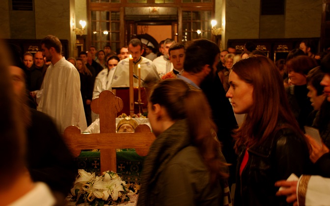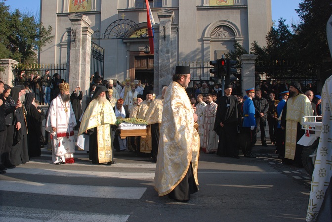 Али најпре ово. Дан уочи сахране, касно поподне 18. новембра 2009, тело Патријарха још увек је било у београдској Саборној цркви изложено за поклоњење и целивање. Био сам са другарицом у реду који се простирао, чак, и у Кнез Михаиловој улици. После скоро седам сати чекања и померања мало-помало, у сумрак дана ушли смо у цркву. Осећао се свуда пријатан мирис тамјана. Његово тело је било изложено ближе улазним вратима, а река народа му се побожно клањала и целивала његову одежду. Био је савршен ред и мир, а да није било неких ванредних интервенција оних који су дежурали унаоколо. Претежно су то били ђакони и студенти Православног богословског факултета. Све време и напољу је такође било све у најбољем реду. Када смо изашли из цркве већ је био мркли мрак. Иако смо дуго чекали нисмо осећали умор, чак ни жеђ, а о осећају глади није било ни говора.
