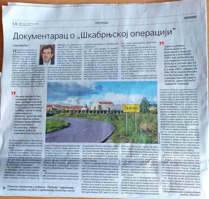 У операцији „Шкабрња”, која се одиграла у новембру 1991, а о којој сам такође овде писао, заробљено је и неколико припадника Шкабрњског самосталног батаљона, који су провели у книнском затвору неколико месеци. Медији су и тада пратили све размене као што су их пратили и о њима извештавали представници многих међународних организација које су се бавиле заштитом људских права. И ових дана је на „Јутјуб” постављено неколико снимака са размена из тог ратног периода на којима се и ја налазим и који ме подсећају на та зла времена. На тим снимцима налази се и Хрват Иван Грујић, који је од 1993. па све до 2016. водио хрватску Комисију за нестале и заточене. Под његовим и мојим председавањем тим комисијама размењено је и много мртвих, али још више живих људи. Годинама се између нас двојице и наших сарадника развио и однос поверења јер смо морали једни другима веровати на реч. И веровали смо толико да смо једно другом поверавали и сопствене животе.