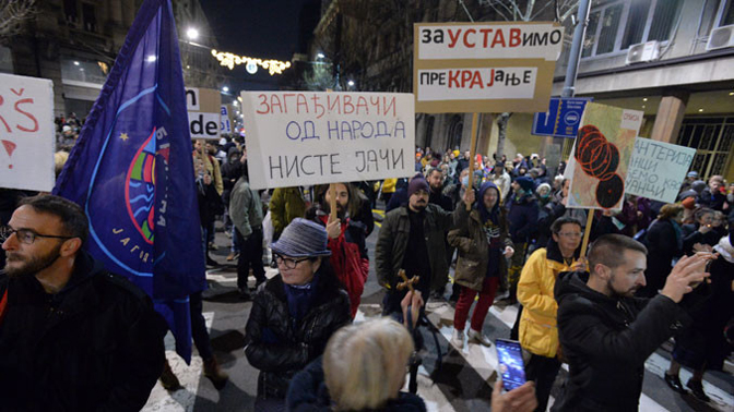 Испред зграде Председништва Србије почео је протест против измена Закона о референдуму и о експропријацији. Окупљени су се потом упутили у протестну шетњу.