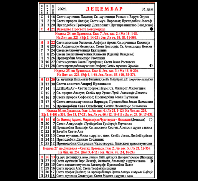 Нека децембар свима / буде на спасење, / четвртог се слави / Богомајке – Ваведење