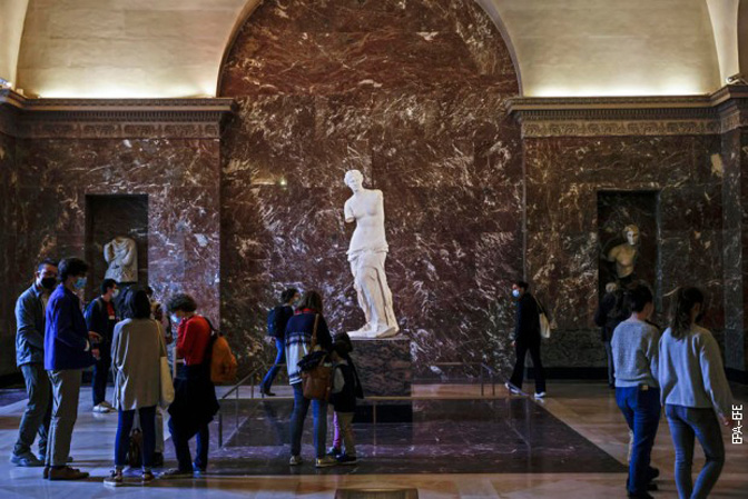 Има, ваљда, десетак година откад сам био у Лувру. Неки дан, у Паризу, пандемијском (мада се пандемија, чини ми се, у свакодневном животу мање види и осети него другде), помислих да је добра прилика да одем поново, само ако не буде баш неподношљиве гужве. И испаде то добра идеја. Није да нема гужве, али као да је мања него у временима неометаног туризма. А има заправо и нечег новог – и не сасвим непријатног – у посети музеју док сви посетиоци носе маске. Тако ти људска лица не скрећу пажњу са артефаката.