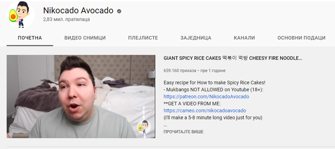 Јутјубер Никокадо Авокадо (Извор: Снимак екрана)