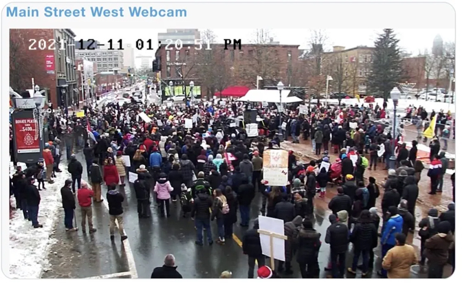 Протест у Монктону (Њу Брунсвик) Фото: webcam for Dec. 11, 2021.