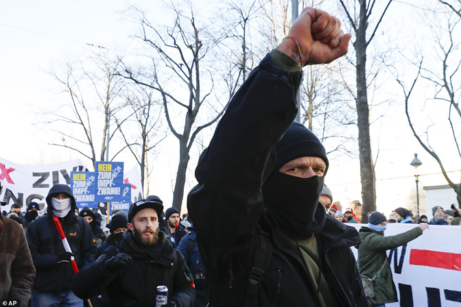 Шеф странке Херберт Кикл говорио је на митингу и придружио се певању државне химне земље. Четврто национално затварање у земљи се завршава у недељу, али ће ограничења остати за невакцинисане грађане.