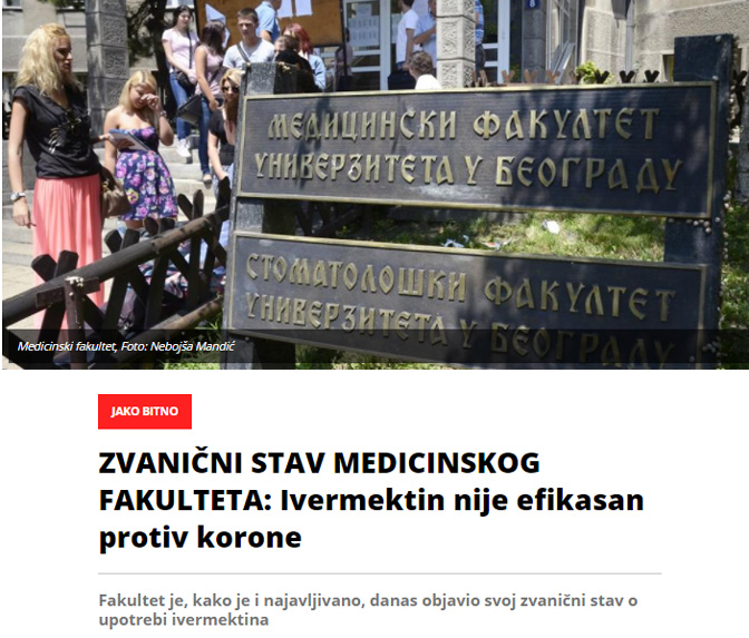„Званичан став Медицинског факултета о употреби лека Ивермектин“ јесте јавна демонстрација једне од Уставом гарантованих слобода, у питању су научне слободе. При томе не мења ништа чињеница да је то урађено на један, за науку, крајње необичан начин: заузимањем ставова. Старији читаоци би помислили да није у питању једна озбиљна високошколска установа већ партијска организација у провинцијској земљорадничкој задрузи која „ничим изазвана“ заузима став који је већ обнародовао ЦК да би демонстрирала да је „на линији“. Научна слобода наставника Mедицинског факултета који су га писали гарантована је Уставом РС (члан 73. став 1.) и разрађена Законом о научноистраживачкој делатности (члан 7.) чак и када они бирају изумрли механизам одржавања идеолошке чистоће у СКЈ да је манифестују.