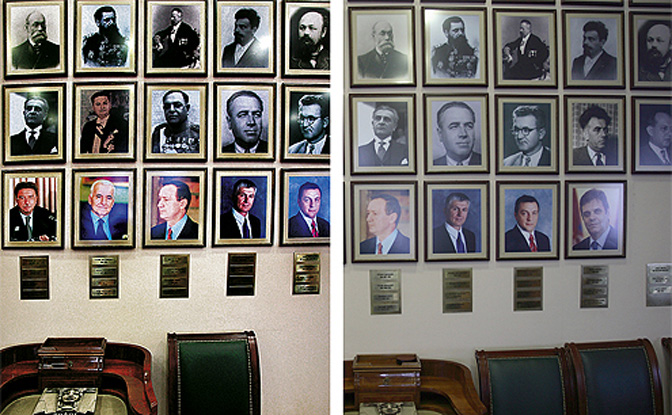 Милан Недић у Влади Србије (лево); зид без фотографије Милана Недића (десно). Извор: Време