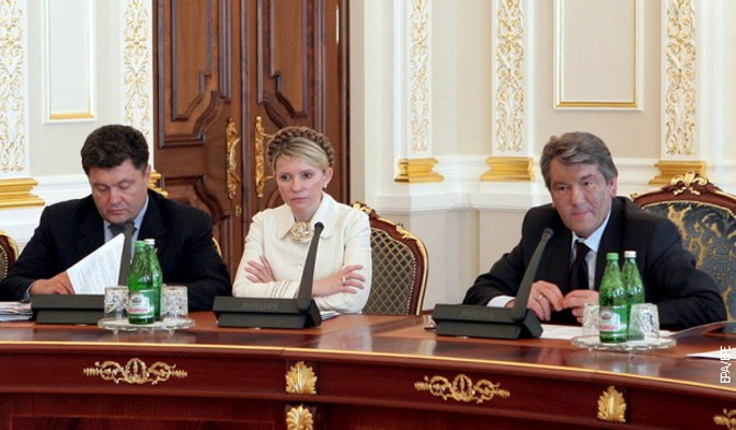 Петро Порошенко, Јулија Тимошенко и Виктор Јушченко септембра 2005. (Извор: РТС)