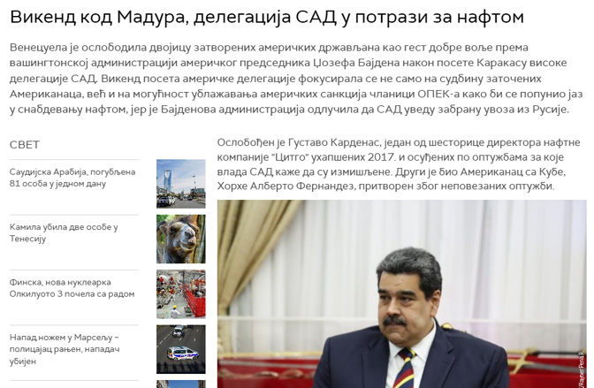 „Био сам један од оних који у почетку нису искључивали могућност да Украјина има оружје за масовно уништење усмерено према Русији. У свету постоји реална опасност од нуклеарног рата. Венецуела позива светску заједницу на свест”, закључио је Мадуро, пренео је Танјуг.