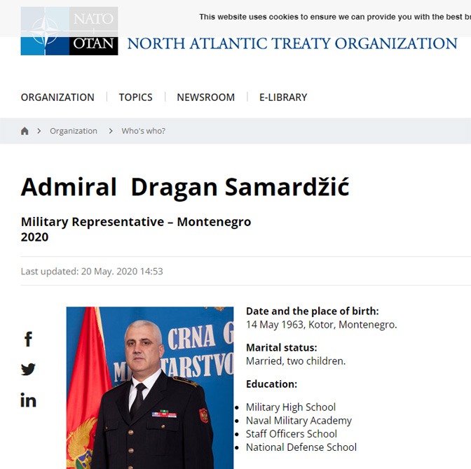 Страница на сајту НАТО посвећена Драгану Самарџићу