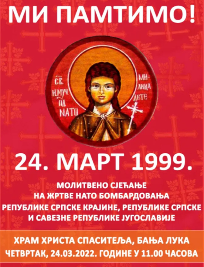 Позивамо све српске родољубе да 24.3. у својим молитвама помену невино пострадале у злочинима НАТО агресора Републике Српске Крајине, Републике Српске и Савезне Републике Југославије