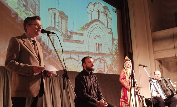 Присутнима се обратио протојереј-ставрофор проф. др Дарко Ђого, а о Ораховцу и животу Срба на Косову и Метохији говорила је Оливера Радић, професорка Ораховачке гимназије и новинар, чија је изложба фотографија „Од Метохије до Васкрсења” отворена у холу Руског дома.