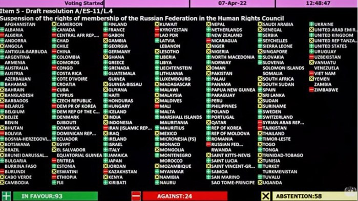 The UN General Assembly votes to suspend Russia's membership in the UN Human Rights Council @UN_HRC