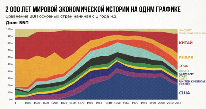 До краја 18. века центар развоја светске економије и културе, чак и уз све узлете Антике, биле су Индија и Кина. Почетком 19. века бруто производ Кине превазилазио је бруто производ Западне Европе два пута. Превласт Запада је потрајала не више од 200 до 250 година, и сада се приближава крају. Не мислим да ће у будућности постојати један центар, као последњих неколико векова, већ неколико центара.